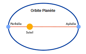 Aphélie : Point de l'orbite d'un corps céleste où la distance de ce corps au Soleil est maximale. Contraire : périhélie